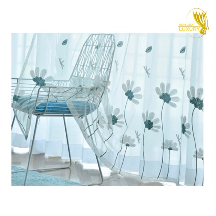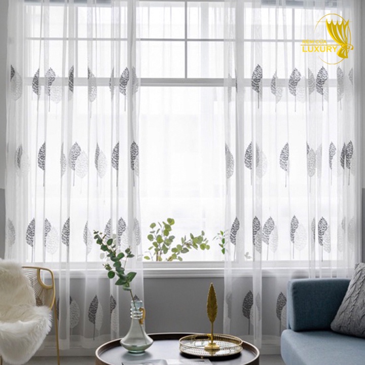 Rèm voan hoa văn chiếc lá đôi, hoa cúc trang trí phòng khách, Phòng ngủ* Đặc điểm: