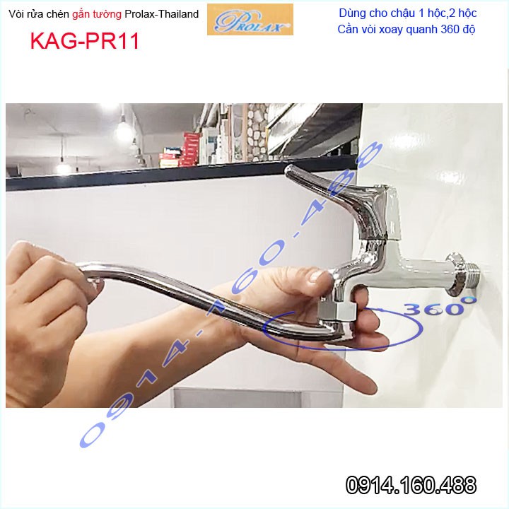 Vòi bếp lạnh gắn tường Prolax Thailand KAG-PR11, vòi rửa chén bát âm tường cao cấp ThailandChất liệu: Vòi bếp lạnh gắn tường, vòi rửa chén bát âm tường Prolax Thailand, KAG-PR11 sản xuất bằng đồng thau nguyên chất bề mặt mạ lớp Chrome-Niken chống chống rỉ séc, luôn sáng bóng theo thời gian