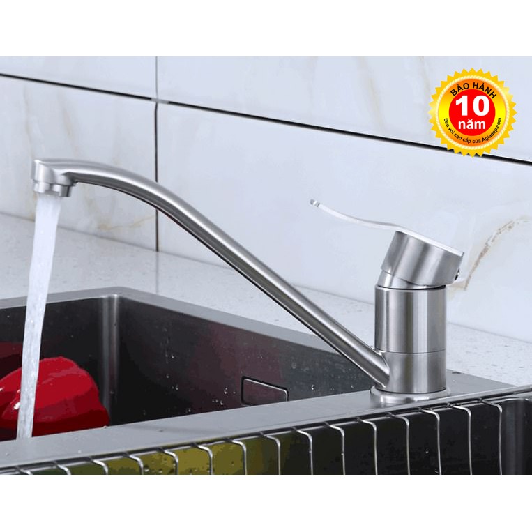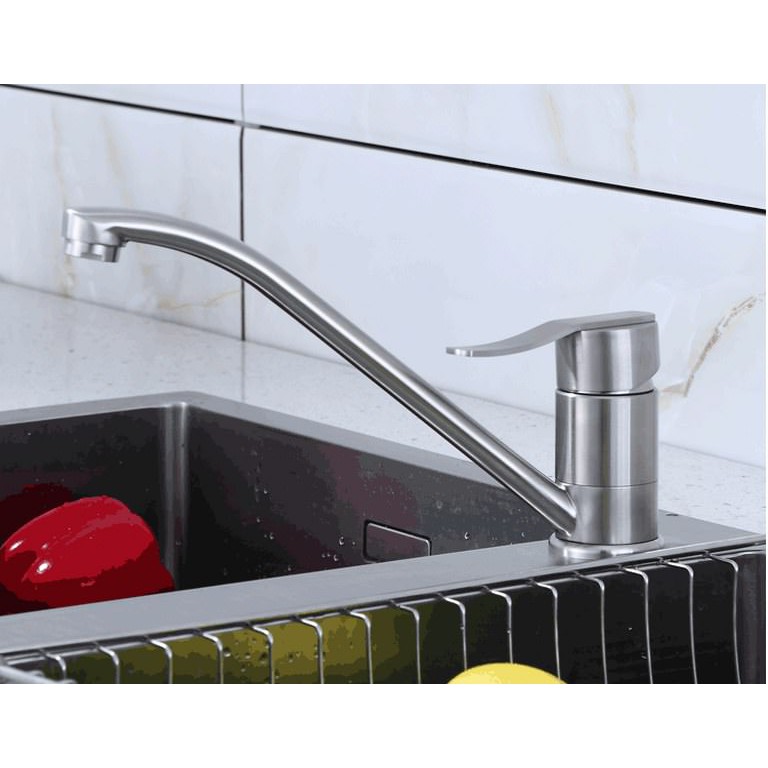 Vòi bếp nóng lạnh (cổ thấp vươn dài) SUS304 - Cao cấp ITALIA (Kèm đôi dây cấp nước)