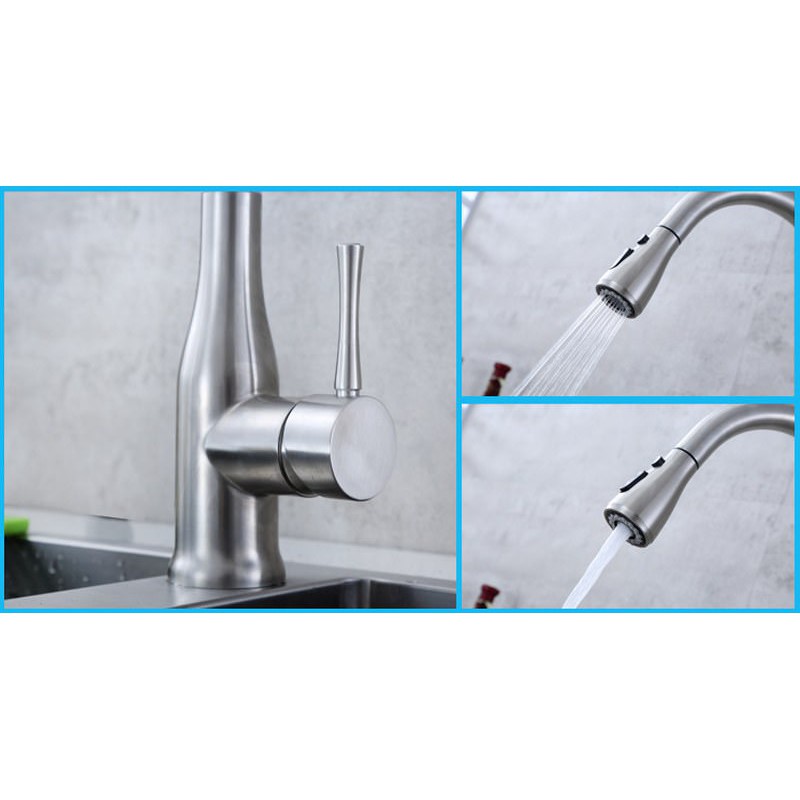 Vòi bếp nóng lạnh (kiêm đầu xịt) SUS304 - Hàng Siêu Cấp - Kiểu A ITALIA (Kèm đôi dây cấp nước)