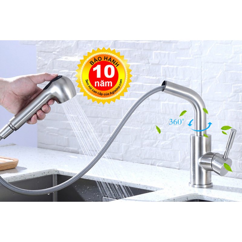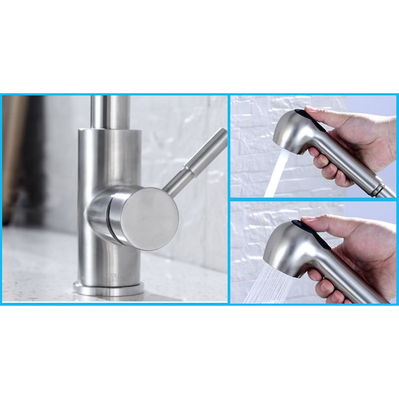 Vòi bếp nóng lạnh (kiêm đầu xịt) SUS304 - Hàng Siêu Cấp - Kiểu C ITALIA (Kèm đôi dây cấp nước)