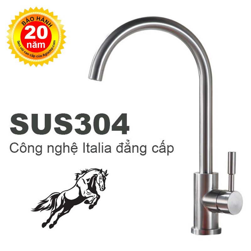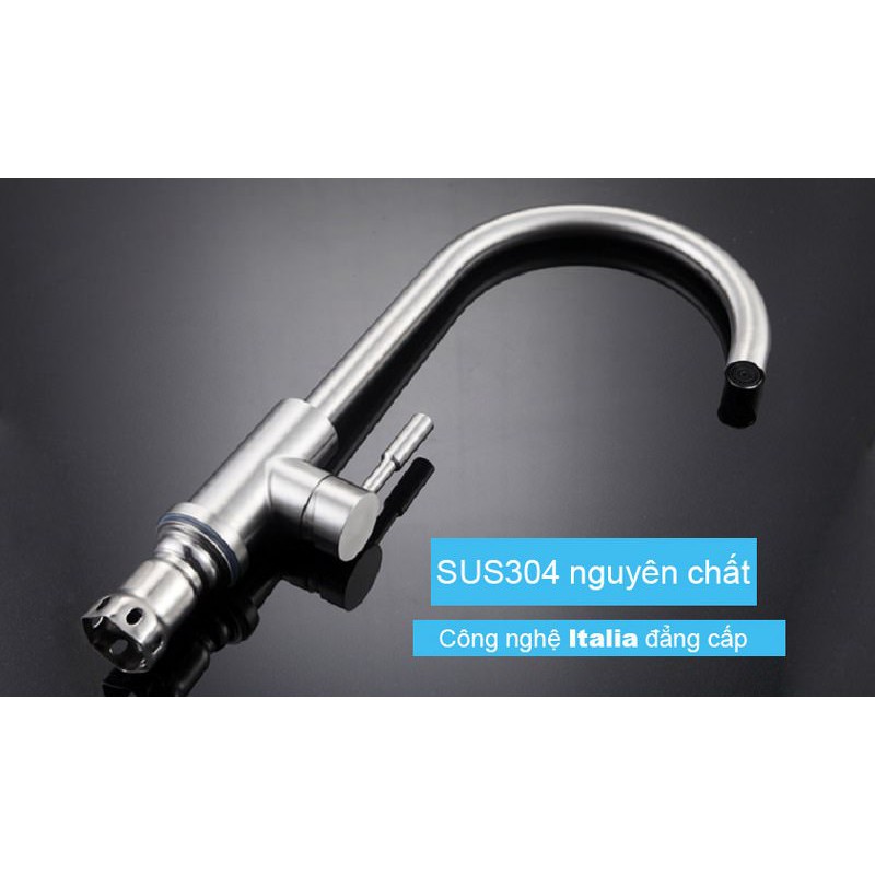 Vòi bếp nóng lạnh SUS304 nguyên chất (cổ tròn) Italia (Bảo hành 20 năm) (Kèm đôi dây cấp nước)