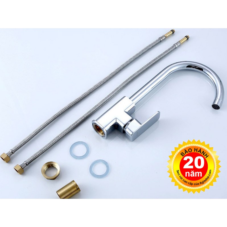 Nhà cửa & Đời sống > Dụng cụ & Thiết bị tiện ích > Chậu rửa & vòi nước || Vòi bếp nóng lạnh (trụ vuông, cổ tròn) Hợp Kim (Hàng Cao cấp HM ITALIA) + Đôi dây cấpCòn hàng