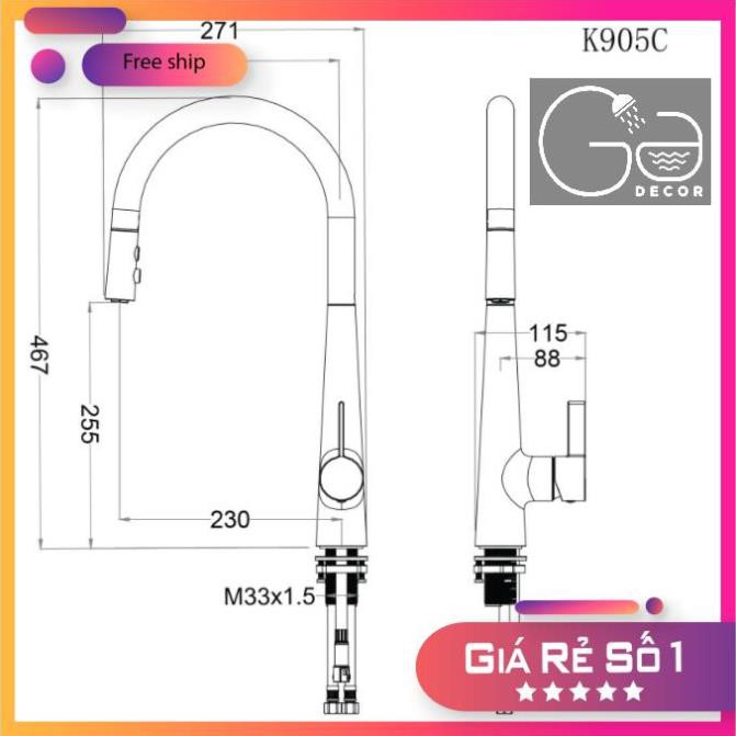 Nhà cửa & Đời sống > Dụng cụ & Thiết bị tiện ích > Chậu rửa & vòi nước || VÒI BẾP NÓNG LẠNH,VÒI GẮN CHẬU, VÒI RỬA CHÉN BÁT NÓNG LẠNH RÚT DÂY CAESAR K905C CHÍNH HÃNG MẪU MỚICòn hàng