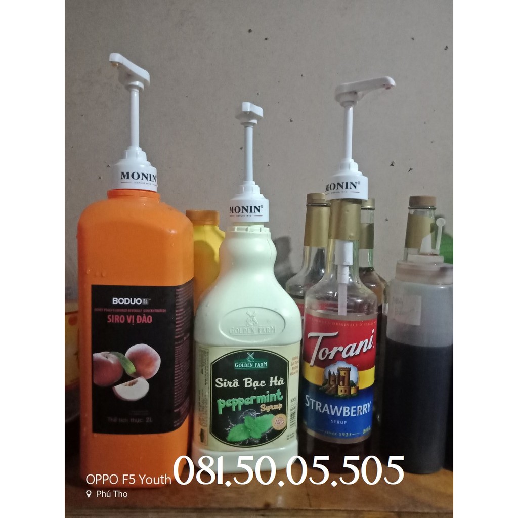 - Thật vi diệu vì 1 chiếc vòi pum như trên lại vừa các chai Monin,Maulin can vàng 2.5kg, Maulin 1.3kg, Gifard,Torani, Boduo 2L,Goldenfarm 2L, siro Osterberg, 750ml...) ( Ảnh trên là khách hàng của shop dùng rồi chụp lại gửi shop)