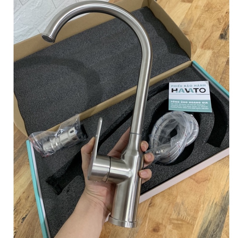 Nhà cửa & Đời sống > Dụng cụ & Thiết bị tiện ích > Chậu rửa & vòi nước || Vòi chậu rửa bát, vòi rửa chén nóng lạnh 1kg8 Xoay bị inox SUS 304(Tặng kèm dây cấp nóng lạnh)Còn hàng