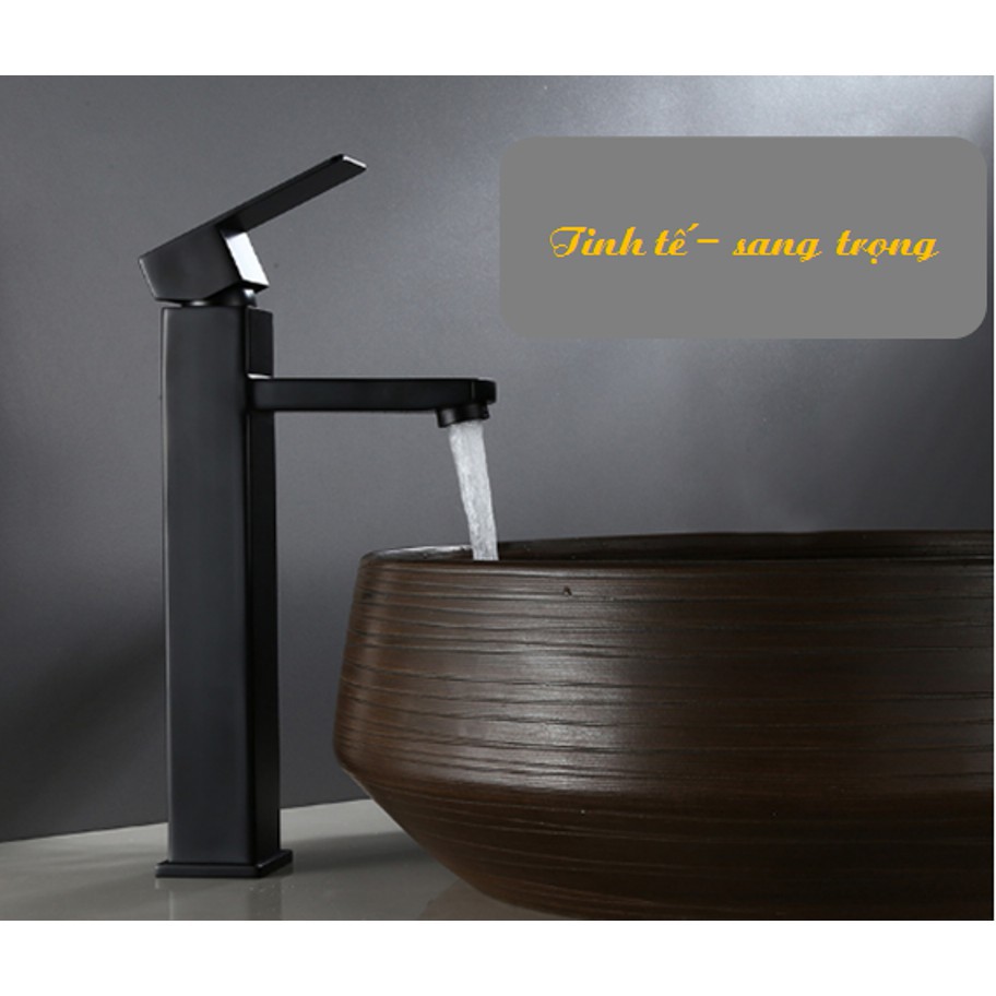 Vòi chậu rửa mặt lavabo dương bàn nóng lạnh cao cấp SNL40 (vuông đen) tặng đôi dây cấp inox