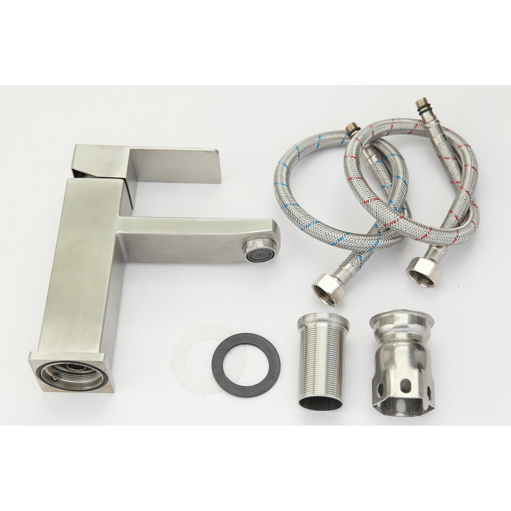 Nhà cửa & Đời sống > Dụng cụ & Thiết bị tiện ích > Chậu rửa & vòi nước || Vòi chậu rửa mặt, vòi Lavabo nóng lạnh thân vuông chất liệu Inox 304 mờ loại cao 20cm và 30cm + Tặng kèm dây cấp nướcCòn hàng