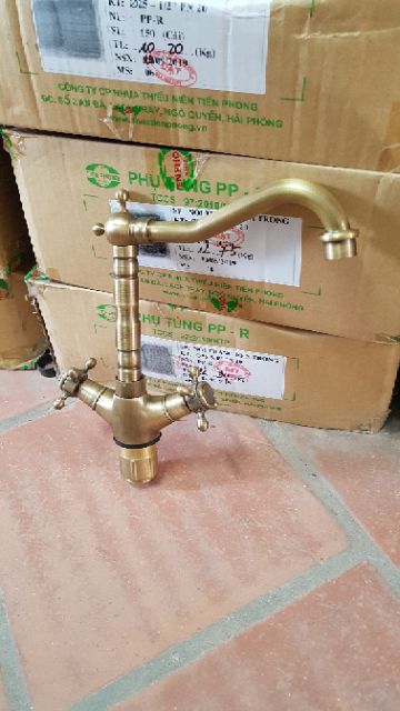Nhà cửa & Đời sống > Dụng cụ & Thiết bị tiện ích > Chậu rửa & vòi nước || Vòi chậu rửa mặt , vòi rửa bát nóng lạnh cao 40 cm cho chậu để bàn đá màu giả cổ ( vòi cần cong )Còn hàng