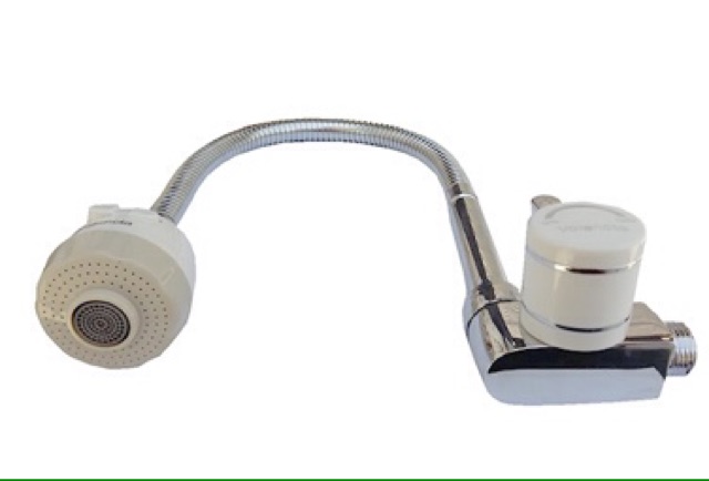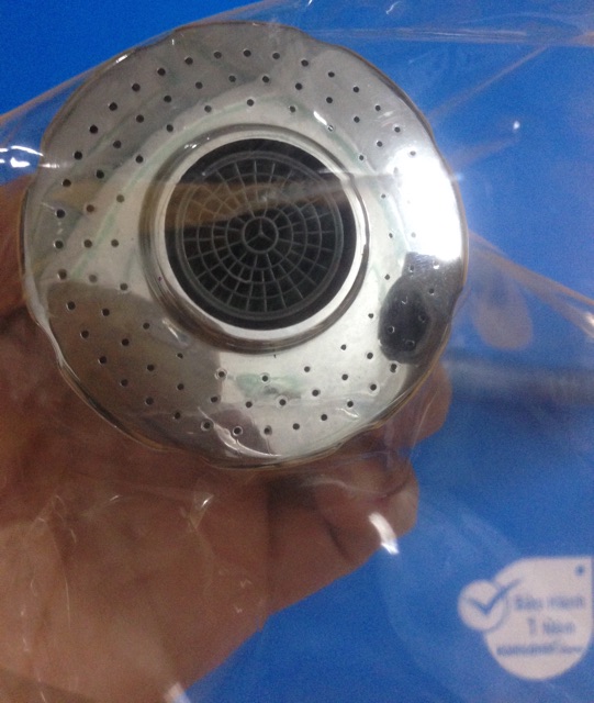 > Đầu vòi được gắn lưới lọc, giúp nước ra được sạch sẽ, mềm mại hơn, nước ra không bị bắn khắp nơi.
