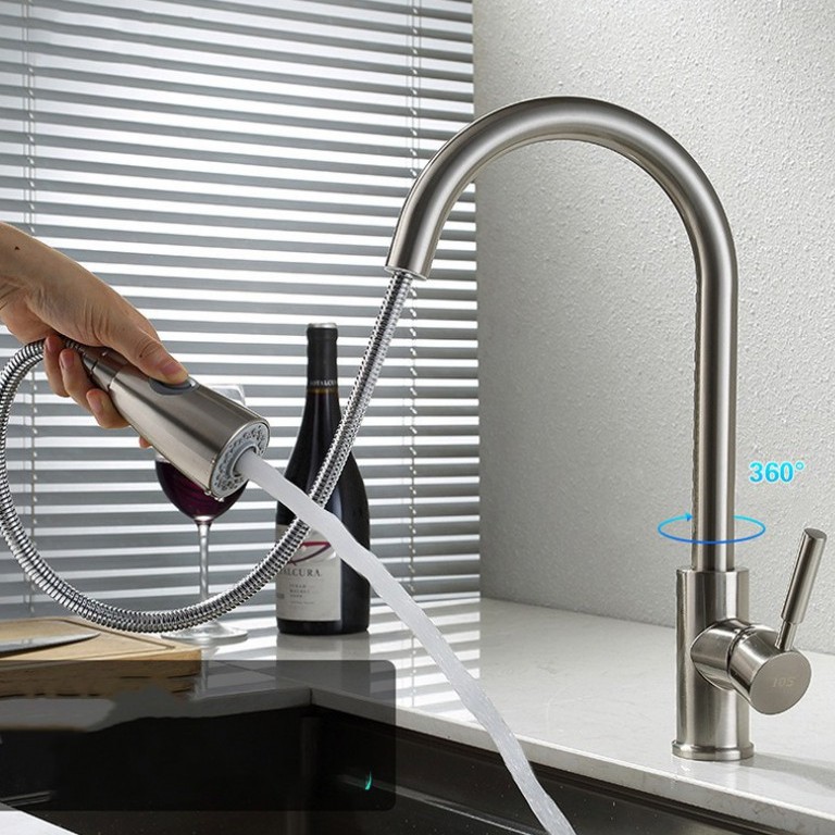 Vòi rửa chén inox 304 thông minh được gia công từ chất liệu thân vòi inox 304 chống gỉ sét, sang trọng, bền bỉ, an toàn. Thân vòi rửa chén được thiết kế dạng trục xoay 360 độ, và cần vòi dễ dàng bẻ mọi hướng.