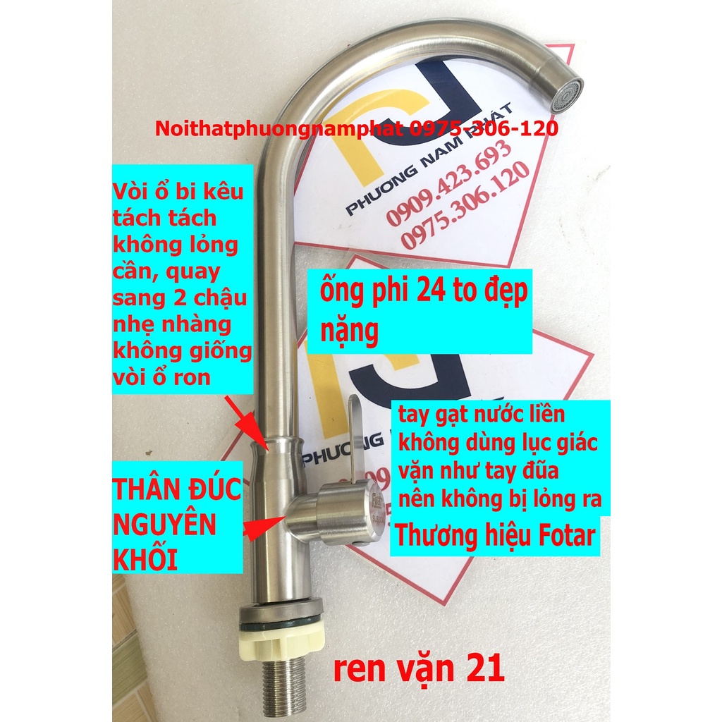 (vòi cổ bi bao không lỏng cần) vòi rửa chén bát lạnh INOX 304 N5011 FOTAR xoay 360 độ dùng cho 2 hộc chậuHàng vòi cao cấp bền trong các loại vòi lạnh