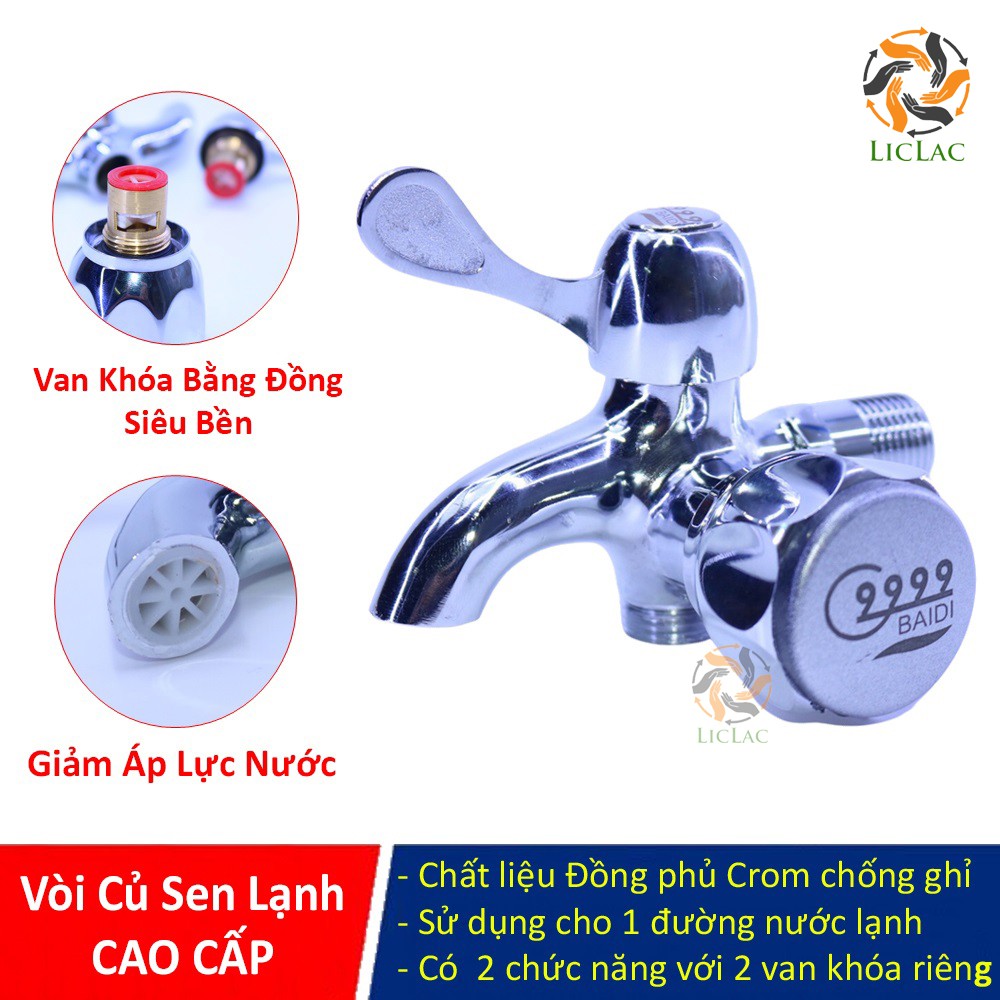 Vòi Củ Sen Tắm Lạnh BAIDI chất liệu Đồng mạ Crom bóng Cao Cấp gồm 2 van khóa xả xô và sen tắm - LICLAC