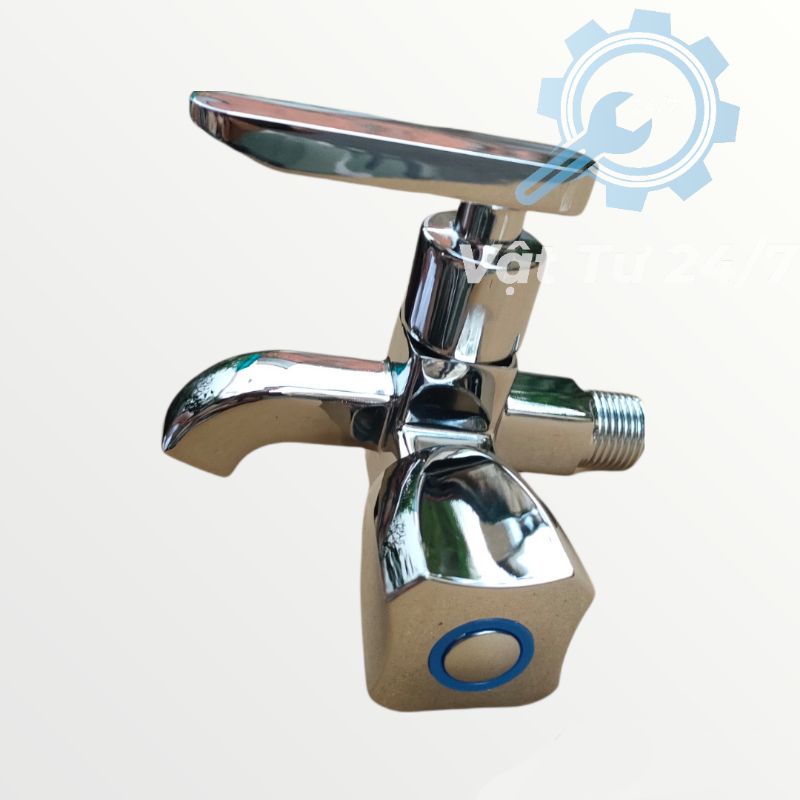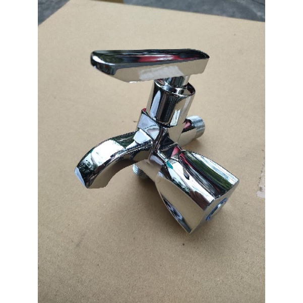 Vòi củ sen tắm lạnh thau bóng mạ crom tay gạt vuông thân vuông ra 2 đường nước dùng phòng tắm nhà vệ sinh phi 21