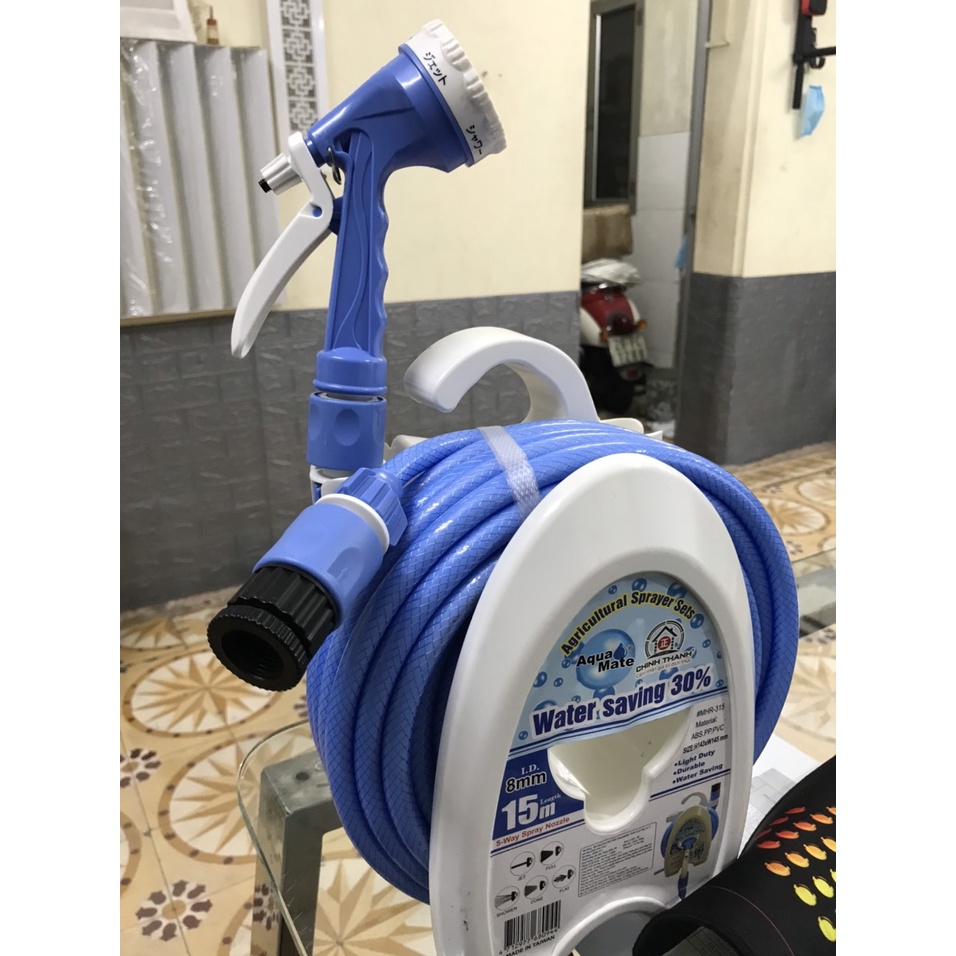 Nhà cửa & Đời sống > Làm vườn > Dụng cụ làm vườn || Bộ vòi cuộn tưới cây rửa xe xịt rửa sân vườn Đài Loan Aqua Mate Aquamate 10m và 15mCòn hàng
