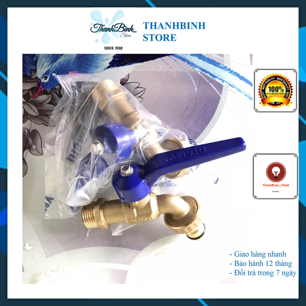 VÒI GẠT NƯỚC ĐỒNG DISMY TAY XANH PHI 21/ 27MM- HÀNG CHÍNH HÃNG