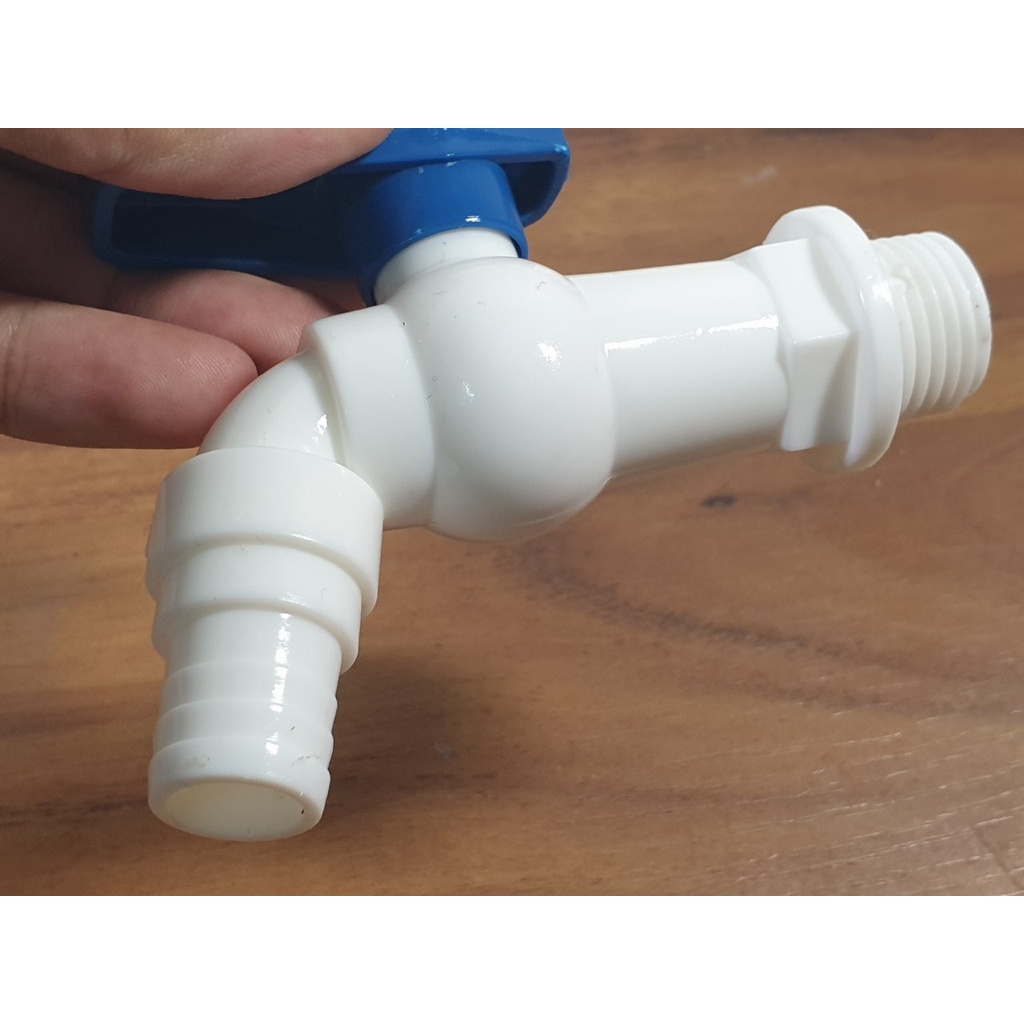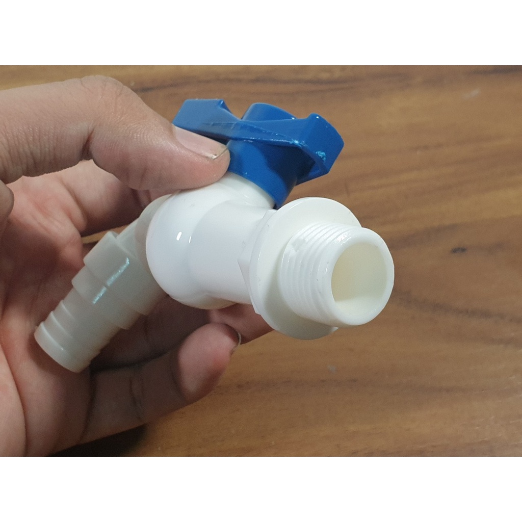Nhà cửa & Đời sống > Dụng cụ & Thiết bị tiện ích > Chậu rửa & vòi nước || Vòi Hồ, Vòi xả nước bằng nhựa PVC loại dày màu trắng răng ngoài phi 21 - Điện nước gia dụng Hoàng KimCòn hàng