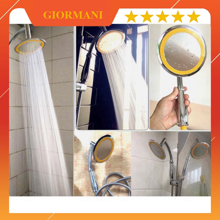 Giới thiệu sản phẩm Full Bộ sen tắm GIORMANI VHS 04Bộ sen tắm tăng áp GIORMANI có thiết kế cổ điển với tay.cầm dài & đầu phun có thể xoay 360 độ để điều chỉnh chiều hướng.của dòng nước, vừa có thể sử dụng nhưng những tay sen thông thường.vừa có thể sử dụng như 1 bát sen đứng mini cho bạn có nhiều trải.nghiệm thú vị hơn khi tắm.. . .Bề mặt sen tắm lên tới 15cm cho diện tích phun nước lớn cùng các.đầu phun có cấu tạo đặc biệt có khả năng tăng áp lực và tiết kiệm.nước hơn 30% so với các loại sen tắm thông thông thường tạo cảm.giác tắm gội thoải mái mà không làm tăng lượng nước được sử.dụng.. . . .Sen tắm được làm từ chất liệu nhựa cao cấp mạ Niken & Crom.cho bề mặt sáng bóng & không bong tróc trong môi trường nước,.riêng phần bề mặt đầu phun được làm bằng hợp kim bền chắc cho thời.gian sử dụng lâu dài.. . .Bộ sản phẩm kèm theo dây cấp nước dài, không xoắn, tiện lợi khi.sử dụng.. . . .Bộ sản phẩm dễ dàng lắp mới hoặc thay thế các vòi sen cũ trong.gia đình chỉ với những thao tác đơn giản.. . .Sản phẩm không chỉ tiện lợi mà còn giúp tạo không gian sang.trọng, khác biệt cho phòng tắm của bạn.. . . . . .