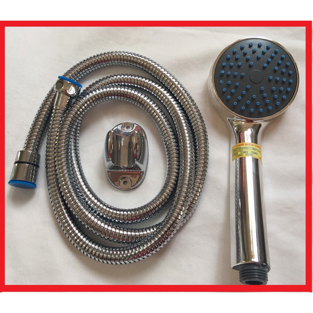 - Chất liệu: Tay sen - Nhựa ABS mạ Chrome, Dây Inox ruột cao su EDPM- Bao gồm: Tay sen+ dây inox 201 1.5m + cài + ốc