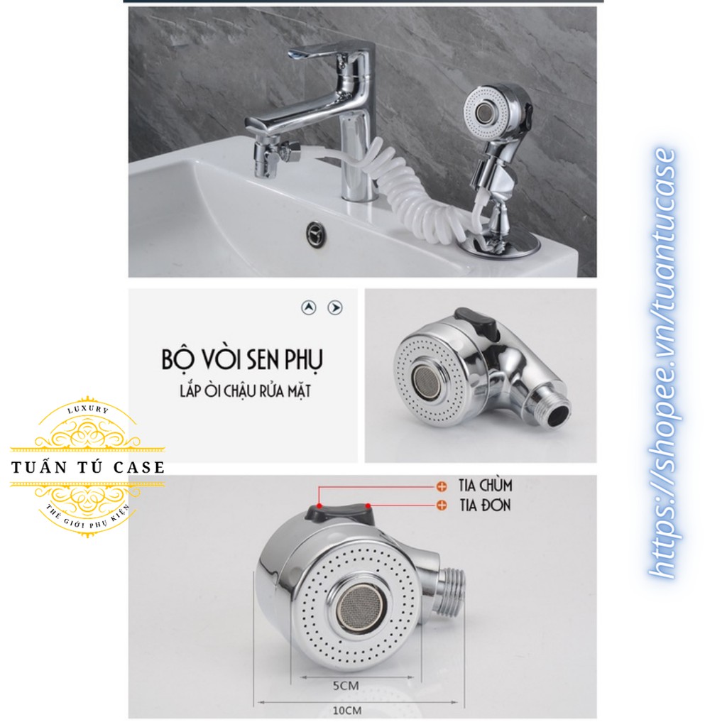 - Ở những nhà vệ sinh chật, có thể dùng luôn vòi sen lắp thêm này để tắm, gội đầu rất tiện. Bộ vòi sen phụ lắp bồn rửa mặt Lavabo và chậu rửa bát nhà tắm là một giải pháp hữu hiệu.