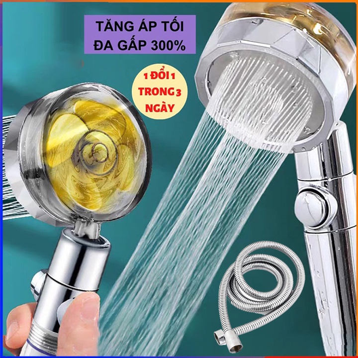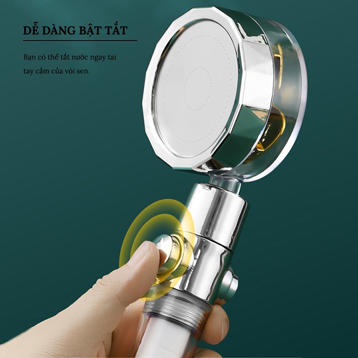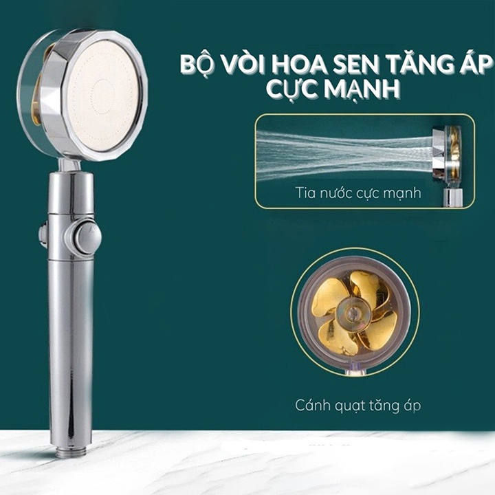 Bộ vòi hoa sen tăng áp cao cấp xoay 360 độ có cánh quạt, nút bấm bật tắt tiện lợi