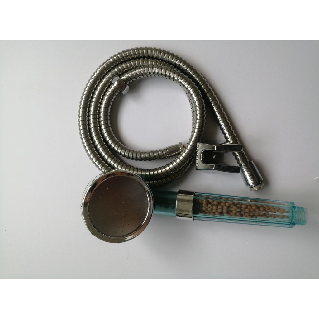 Giới thiệu Bộ vòi hoa sen tăng áp có hạt lọc Nano màu xanh dương lọc nước, lọc khuẩn đủ bộ tay sen+ dây+ giá đỡ - QM012