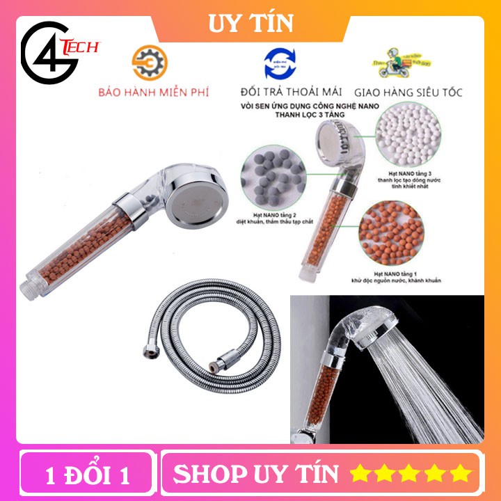 Vòi hoa sen tăng áp có hạt nano lọc nước công nghệ Nhật Bản ( bát sen + dây nối )