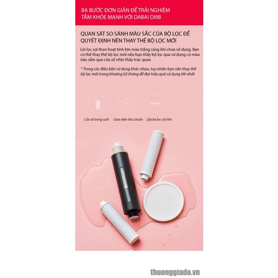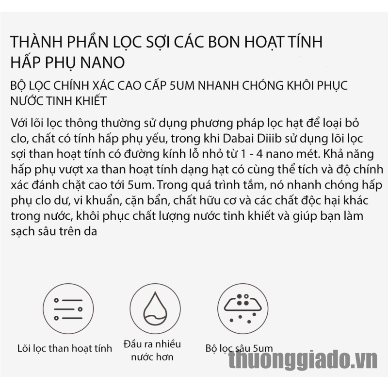 - Vòi sen cao cấp DiiiB được trang bị hệ thống lọc kép với các sợi than hoạt tính, giúp hấp thụ lượng clo dư trong nước. Bên cạnh đó, bộ lọc cotton hoạt động nhằm loại bỏ các hạt bụi nhỏ và tạp chất lơ lửng trong nước, từ đó mang đến nguồn nước sạch để tránh gây tổn hại đến làn da của người sử dụng.