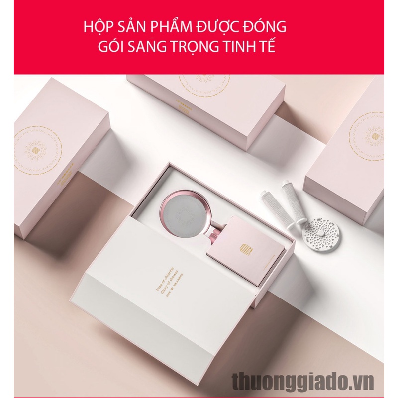 - Vòi sen cao cấp DiiiB sở hữu thiết kế sang trọng với hai tông màu là hồng và đen, mang đến vẻ đẹp tinh tế và thanh lịch. Bên cạnh đó, đầu vòi sen chứa 240 lỗ xả nước dày đặc giúp tạo ra những dòng nước nhỏ với kích thước chỉ 0.25mm, cho phép thoát nước mạnh ngay cả ở mức áp suất thấp hơn. Nhờ đó, người dùng sẽ cảm thấy vô cùng thoải mái và dễ chịu như đang thư giãn ở SPA khi sử dụng sản phẩm này.