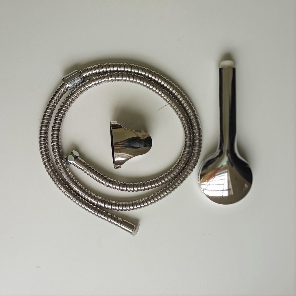 Bộ sản phẩm bao gồm : 1 đầu vòi hoa sen, 1 dây cấp nước 1.5m, 1 giá đỡ vòi hoa sen, 1 bộ đinh ốc vít.