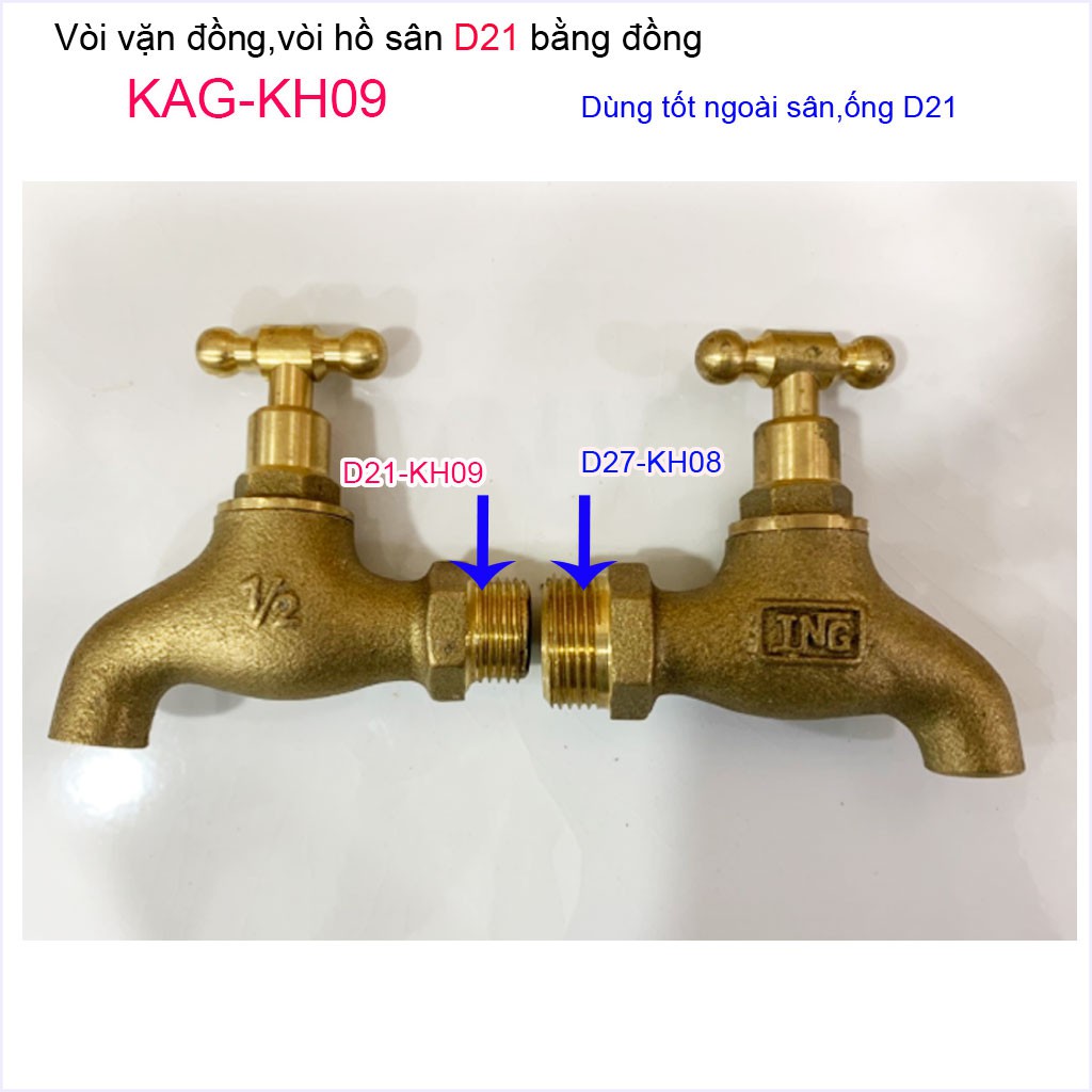 Vòi lạnh gắn tường KAG-KH09, vòi hồ đồng D21, vòi xả sàn tay vặn nước mạnh sử dụng tốtSử dụng: dùng xả nước ra xô, chậu, xả nước cho máy giặt, vòi xả sàn nước, vòi xả nước cho sàn nước...