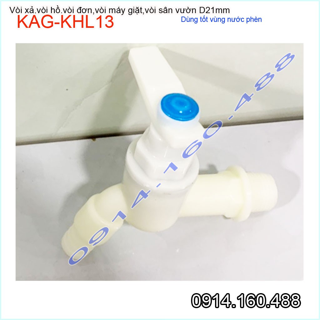 Vòi lạnh gắn tường KAG-KHL13, vòi hồ nhựa D21, vòi xả sàn nhựa 100% dùng vùng nước phèn không gỉ séc nước mạnh sử dụng t