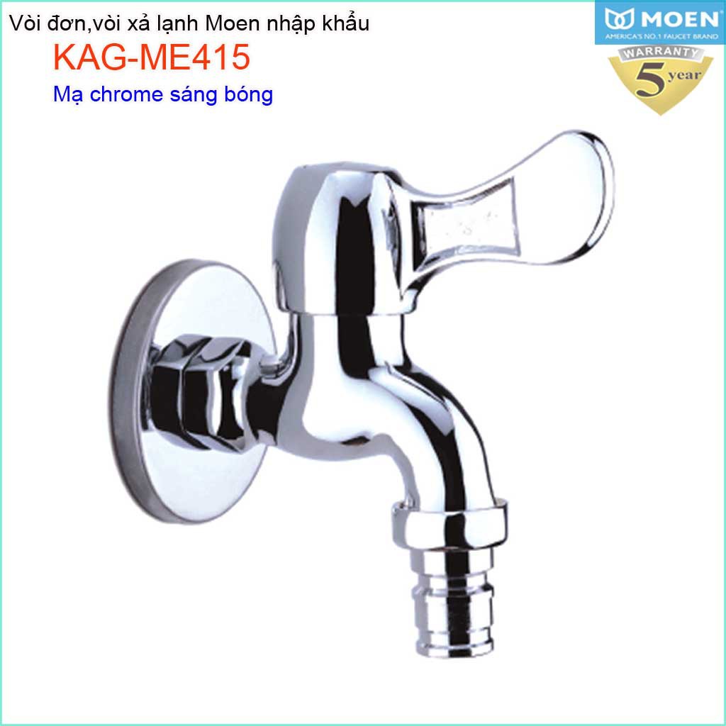 Vòi lạnh gắn tường, vòi xả lạnh MOEN KAG-ME415Chất liệu: Vòi lạnh gắn tường, vòi xả lạnh MOEN KAG-ME415 nhập khẩu nguyên chiếc 100% từ nhá máy sản xuất của tập đoàn MOEN, thương hiệu hàng đầu của American, Vòi MOEN đạt chuẩn chất lượng cao đáp ứng mọi yêu cầu của các khách hàng trên toàn thế gới.