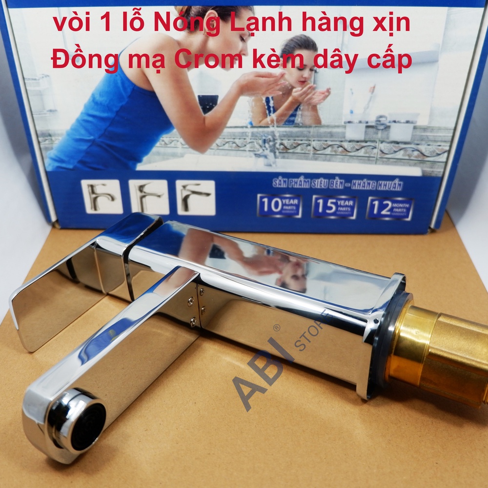 Nhà cửa & Đời sống > Đồ dùng phòng tắm > Vòi sen & vòi xịt vệ sinh || Vòi lavabo 1 lỗ nóng lạnh vuông Korea thân đồng hàng xịn B.H 2 năm, Vòi chậu rửa mặt 1 chân kèm đôi dây cấp nướcCòn hàng