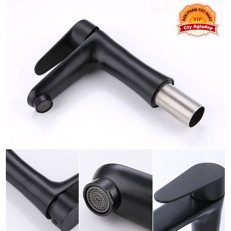 Nhà cửa & Đời sống > Dụng cụ & Thiết bị tiện ích > Chậu rửa & vòi nước || Vòi lavabo 1 trụ tròn cần thẳng SUS304 (Màu đen) + 2 dây cấp - Cao cấp ITALIACòn hàng