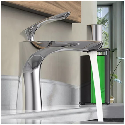 - Sản phẩm vòi lavabo lá liễu được thiết kế sang trọng và sáng bóng..