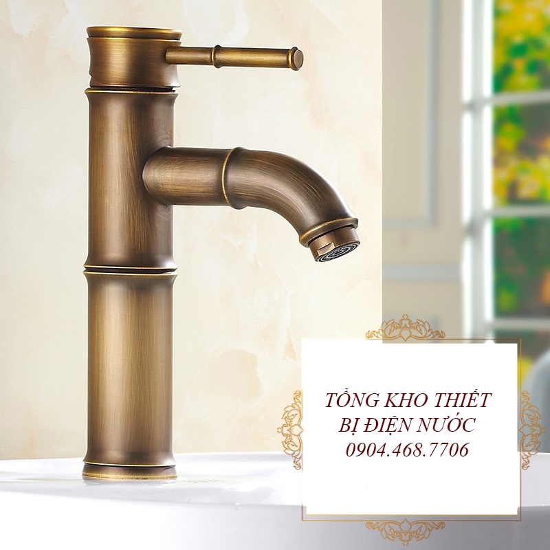 Vòi lavabo chậu rửa mặt nóng lạnh thân đồng cổ cây trúc cao cấp SNL20 tặng đôi dây cấp inox