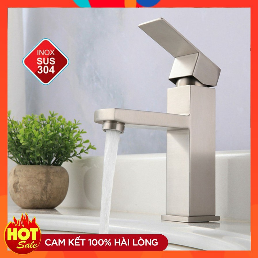 Nhà cửa & Đời sống > Dụng cụ & Thiết bị tiện ích > Chậu rửa & vòi nước || Vòi lavabo chậu rửa mặt vuông inox 304 SNL41 tặng đôi dây cấp nước inoxCòn hàng