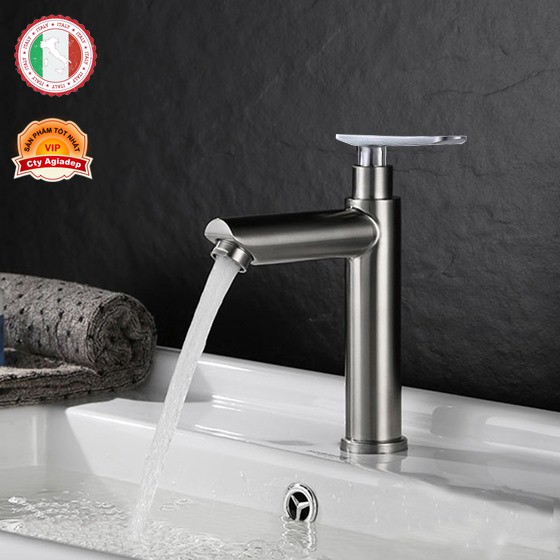 Nhà cửa & Đời sống > Dụng cụ & Thiết bị tiện ích > Chậu rửa & vòi nước || Vòi Lavabo (chỉ lạnh - trụ tròn) SUS304 - Hàng Cao cấp ITALIA (Kèm dây cấp nước)Còn hàng