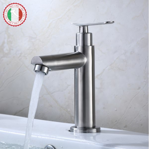 Vòi Lavabo (chỉ lạnh - trụ tròn) SUS304 - Hàng Cao cấp ITALIA (Kèm dây cấp nước)