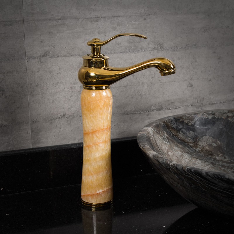 Vòi lavabo mạ vàng bọc gớm giả đá