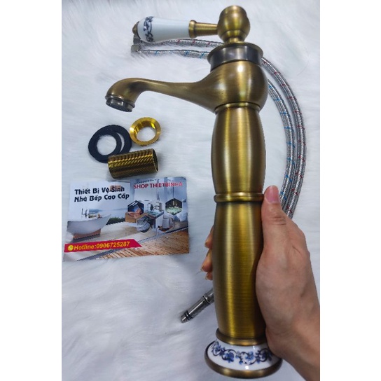 Giới thiệu Vòi lavabo điếu cao nóng lạnh đồng thau cổ điển Đèn thần