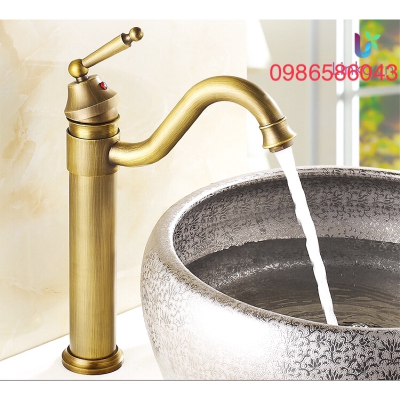 Giới thiệu vòi lavabo điếu đồng giả cổ nóng lạnh 30cm, vòi giả cổ, vòi cổ điển,