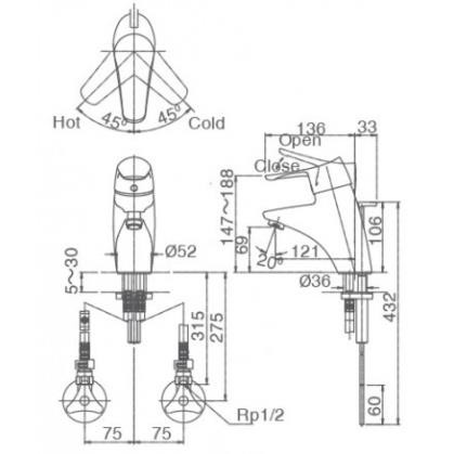 Vòi lavabo nóng lạnh INAX LFV-5102S cao cấp nhập khẩu từ Nhật Bản dùng cho chậu 1 lỗ (FC) đến từ thương hiệu thiết bị vệ sinh INAX- Áp lực nước : 0.05 MPa ~ 0.75 MPa