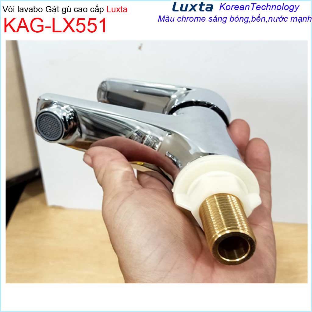 Chất liệu: Vòi lavabo lạnh gật gù Luxta, Vòi chậu rửa cao cấp siêu bền KAG-LX551 sản xuất bởi công nghệ đúc trọng lực Korea, chất liệu đồng thau Korea,