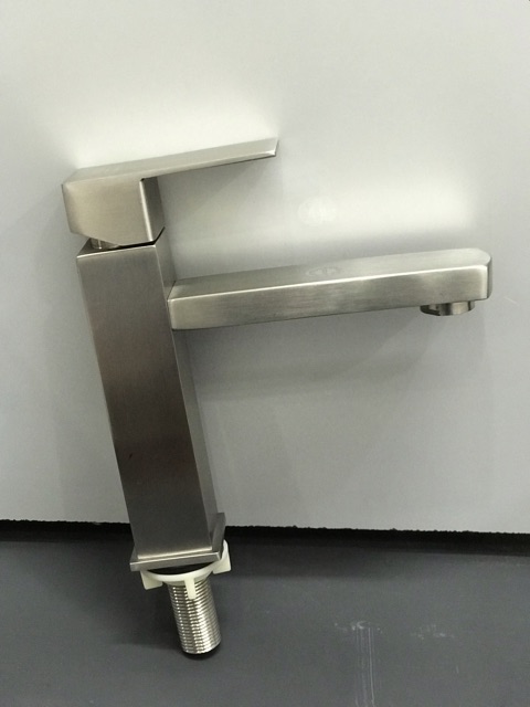VÒI LAVABO LẠNH VUÔNG GẬT GÙ CỔ DÀI INOX304 - BẢO HÀNH 3 NĂM