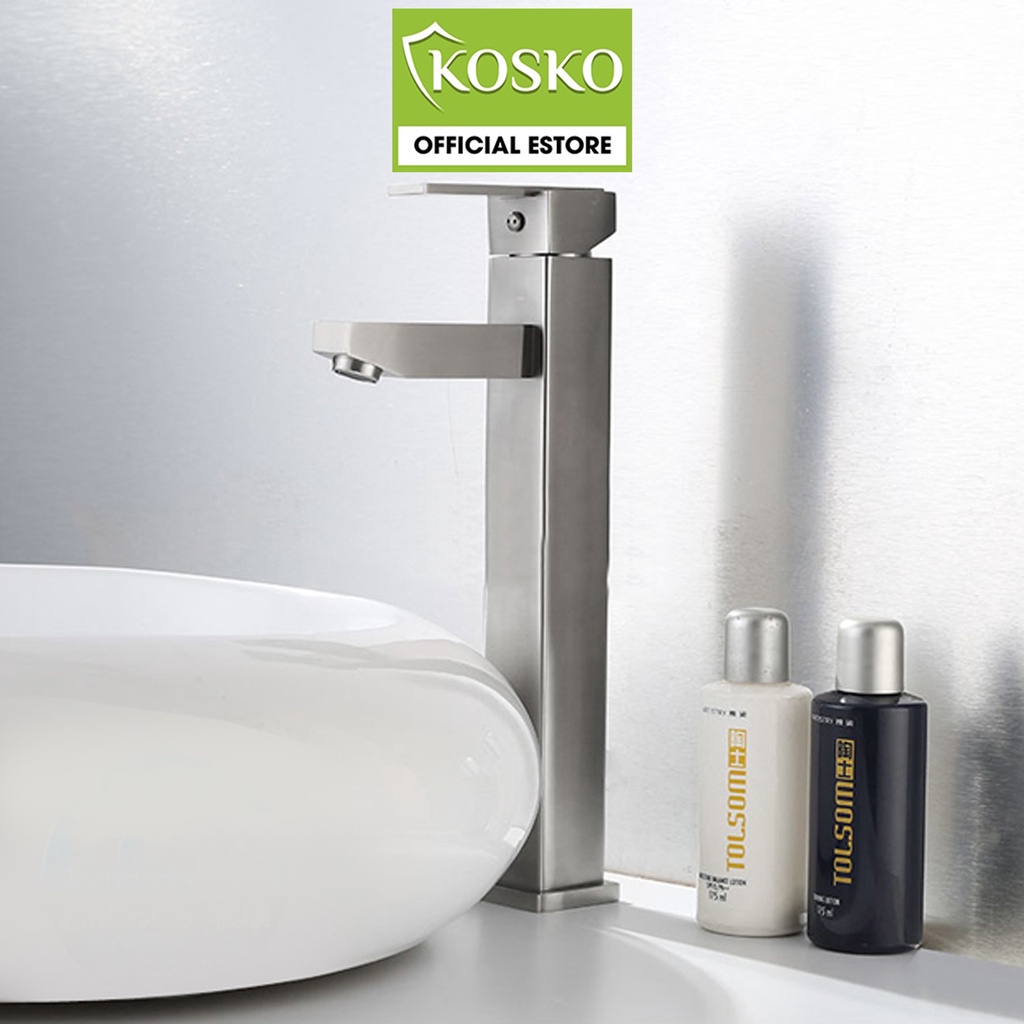 Vòi lavabo NL inox SUS 304 KOSKO vuông cao 30cm (Hàng chuẩn loại 1) (Tặng kèm dây cấp) phù hợp với mọi loại chậu rửa mặt
