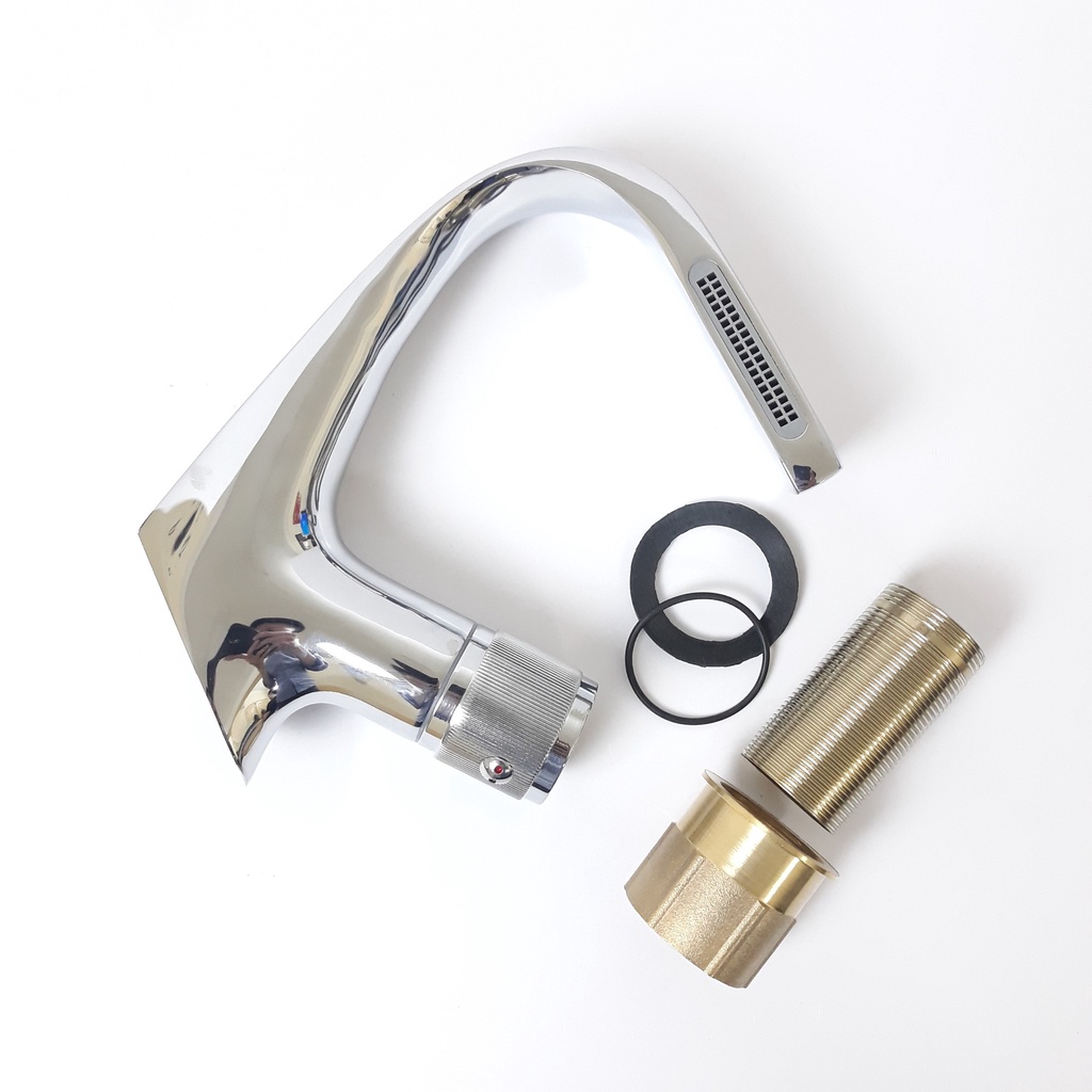 Nhà cửa & Đời sống > Dụng cụ & Thiết bị tiện ích > Chậu rửa & vòi nước || Vòi lavabo nóng lạnh bằng đồng mạ màu bạc dáng vòng cung độc đáo, sang trọng, hiện đạiCòn hàng