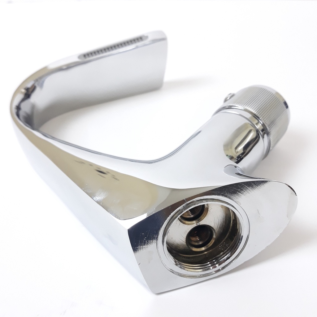 Vòi lavabo nóng lạnh bằng đồng mạ màu bạc dáng vòng cung độc đáo, sang trọng, hiện đạiMô tả sản phẩm: