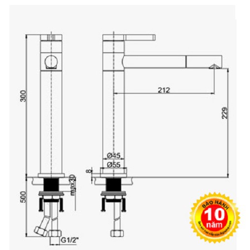 - Vòi Lavabo nóng lạnh (chân cao) thiết kế hiện đại, tinh tế với đầu vòi tạo bọt khí rất thuận tiện khi sử dụng dùng để lắp đặt trong nhà tắm với các kiểu Lavabo nổi tạo không gian sang trọng, đẳng cấp cho phòng tắm của gia đình bạn.
